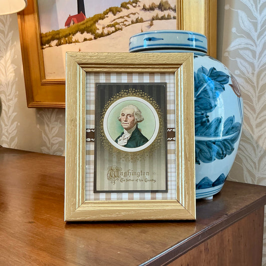 Early 20th Century George Washington Postcard on Brown Plaid in Gold Frame