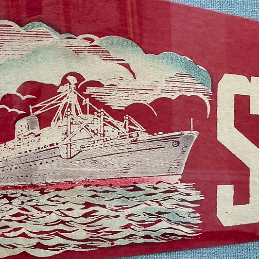 S.S. Atlantic Vintage Felt Naval Ship Pennant on Light Blue Twill in Gold Frame