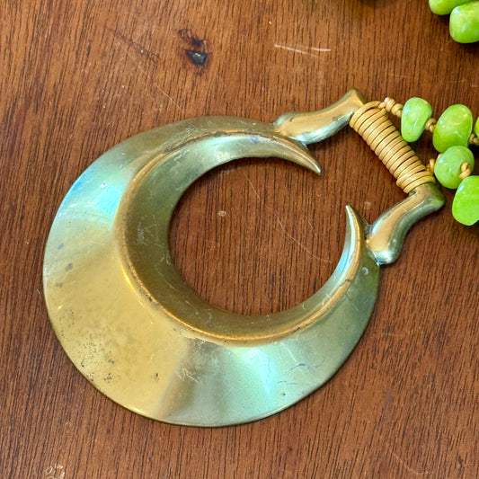 Antique English Horse Brass Union Jack Medallion White Turquoise Beaded Hand Knotted Necklace