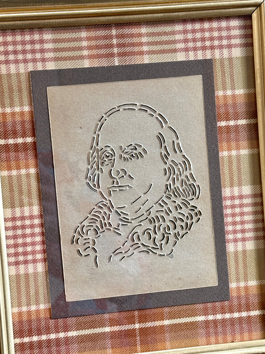 Vintage Benjamin Franklin Quilting Stencil on Plaid in Gold Frame