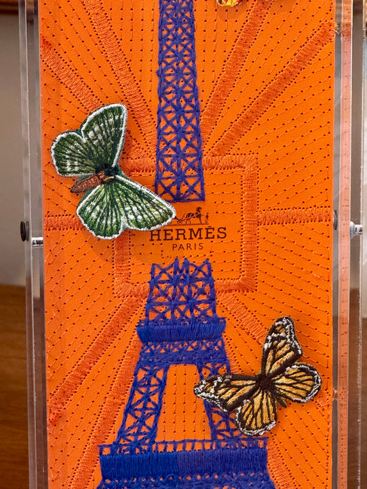 Stephen Wilson Hermes Eiffel Tower Butterflies in Acrylic Shadowbox