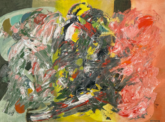 Jacob Moses Semiatin Abstract Composition Oil Painting in Gold Floater Frame