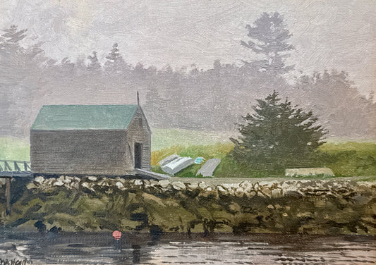 William Brewster Hoyt Boat House New England Oil Painting in Gold Frame