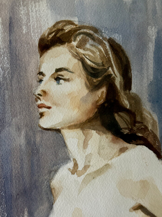 Vintage Keith Hoffman Female Nude Watercolor Portrait in Silver Frame