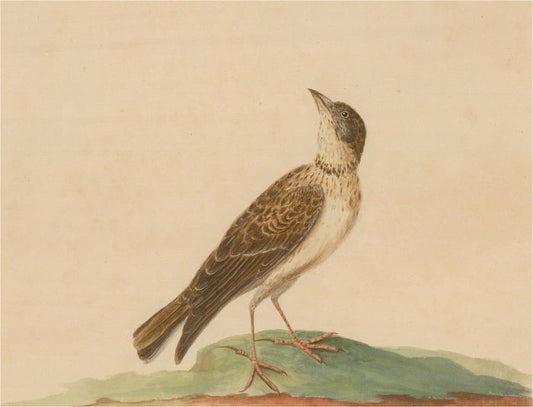 19th Century Shore Bird Watercolor Bird Portrait in Natural Wood Frame