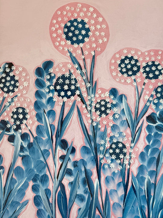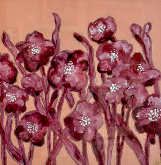 Alison Diamond McElroy Go Pink or Go Home Abstract Floral Painting in White Floater Frame