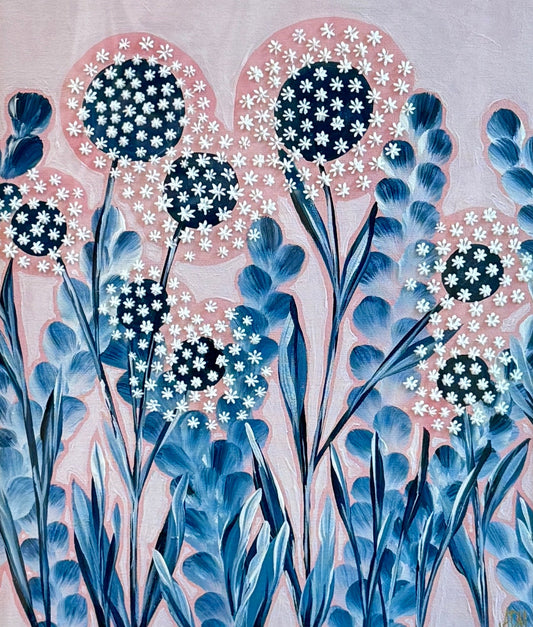Alison Diamond McElroy Into the Meadow Abstract Floral Painting in Gold Frame