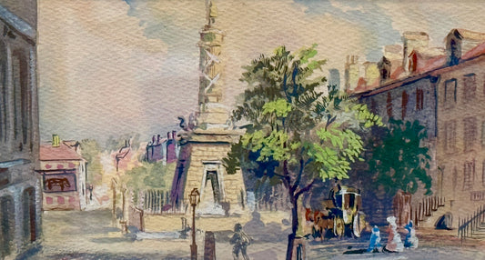 • William Reginald Watkins Watercolor of the Battle Monument, Baltimore, MD in Wood and Gilded Frame