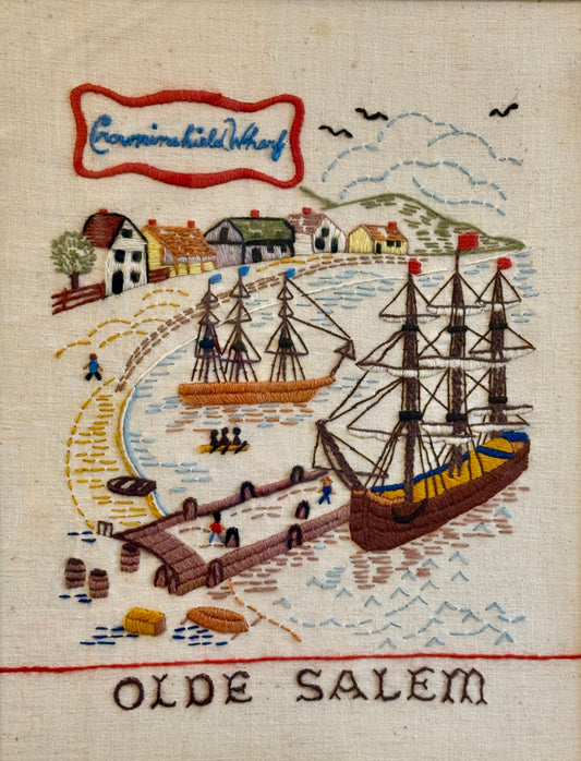 • Olde Salem Continental Wharf Salem, MA Needlepoint in Gold Frame
