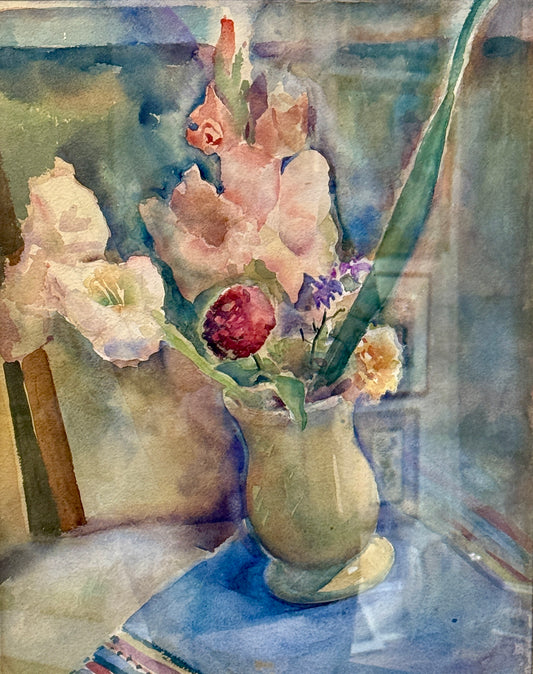 Attr. to Arthur Beecher Carles Watercolor Lilies and Floral Still Life Painting in Gold Frame