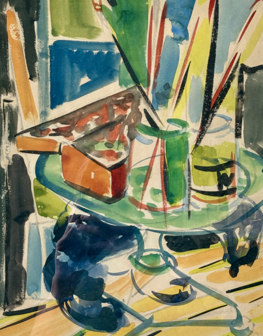 Richard Derby Tucker Abstract Colorful Still Life Watercolor Painting in Wood Frame