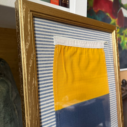 Vintage Cotton Canvas Nautical Yachting Signal Flag for "K" on Blue Ticking Stripe in Gold Frame