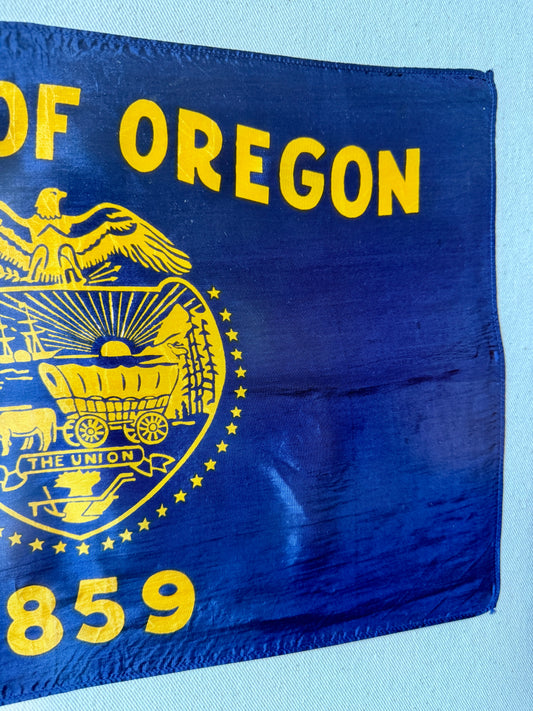 Vintage State of Oregon Silk Flag on Duck Cloth in Gold Frame