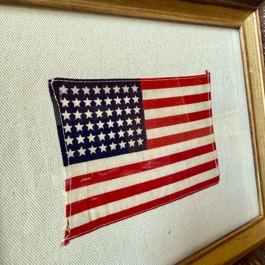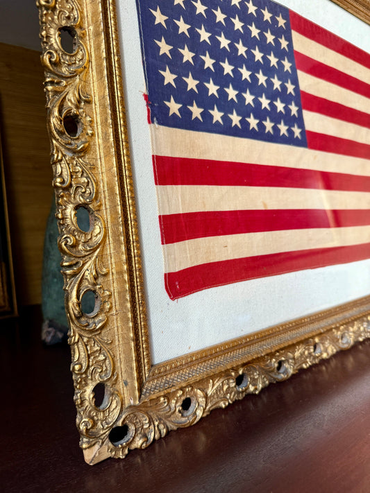 48 Star American Flag on Duck Cloth in Ornate Gold 19th Century Frame