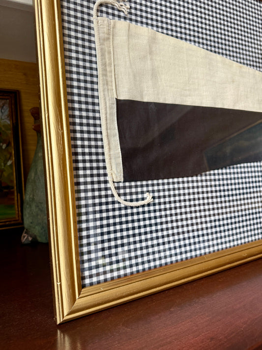 Vintage Cotton Canvas Nautical Yachting Signal Flag for "I" on Black and White Gingham in Gold Frame