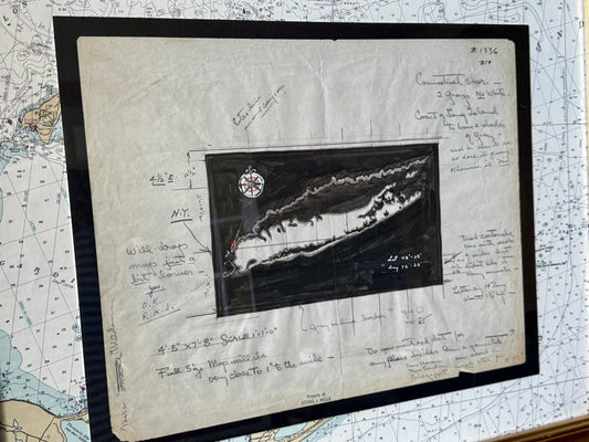 George Wells Long Island Amagansett New York City Rug Design Sketch in Gold Frame