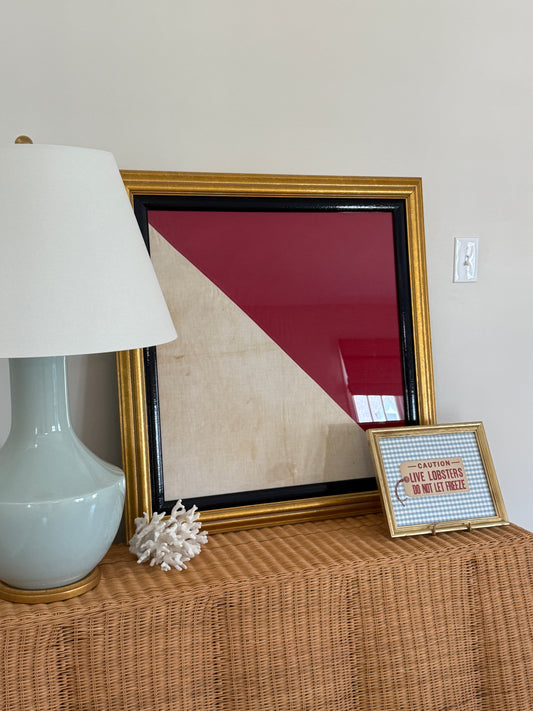 Extra Large Vintage Canvas Semaphore Nautical Signal Flag in Gold and Navy Frame