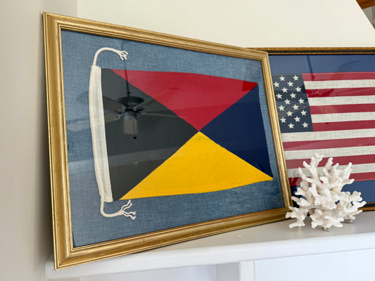 Vintage Cotton Canvas Nautical Yachting Signal Flag for "Z" in Gold Frame