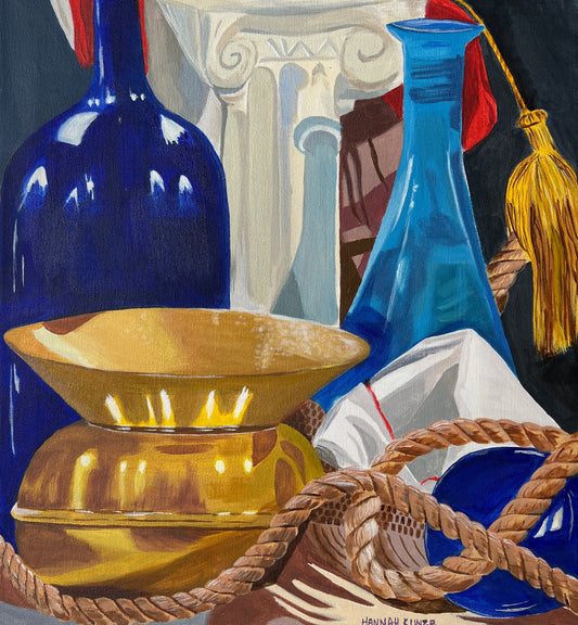 Contemporary Colorful Greek Still Life in Gold Floater Frame
