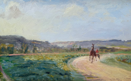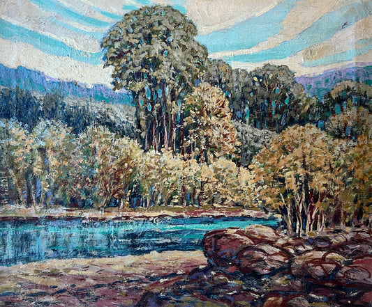 Early 20th C. Impressionist Landscape Oil Painting in Ornate Gold Frame