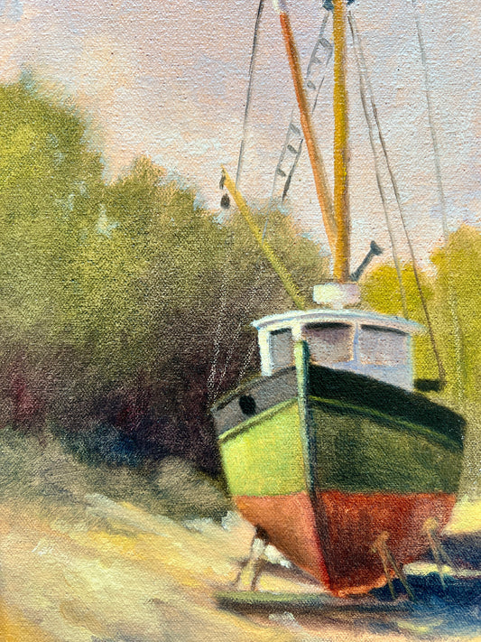 Dry Dock Ship Portrait Oil Painting in Gold Frame