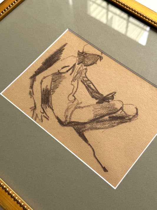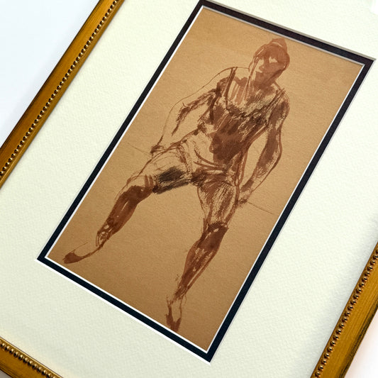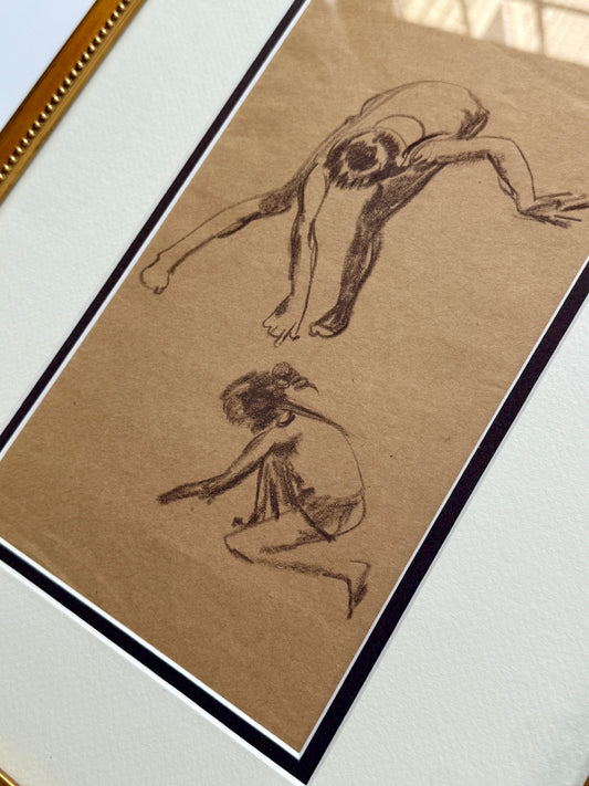 Early 20th C. Figural Portrait Stretching Swimmer Drawing in Gold Frame