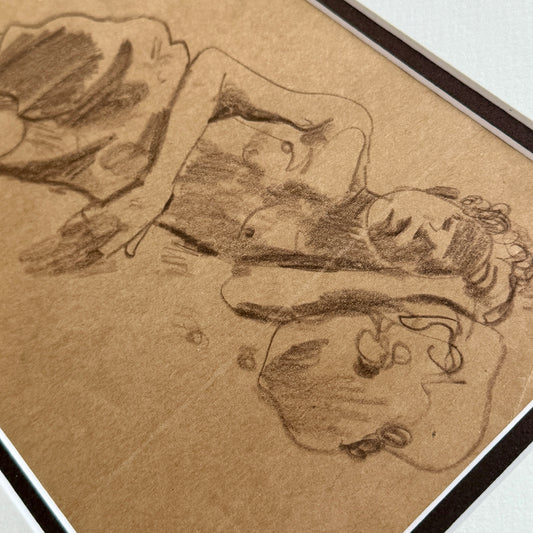 Early 20th C. Figural Portrait Young Girl and Boy Swimmers Drawing in Gold Frame