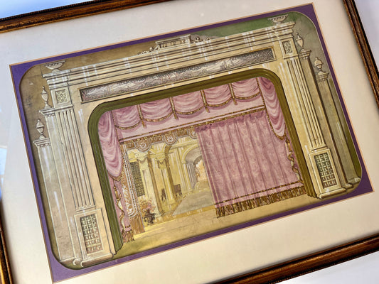 Early 20th C. Elaborate Art Deco Theatrical Set Design Gouache Painting in Gilded Frame