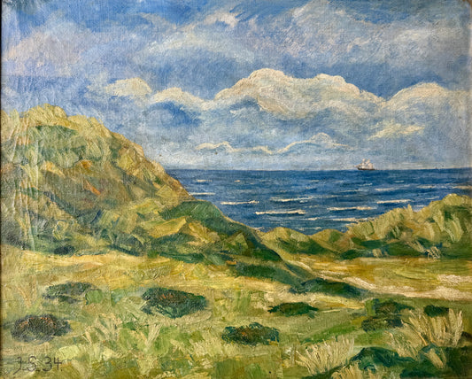 1933 Elisabeth Schiott Sunny Coastal Bluff Landscape Oil Painting in Gold Frame