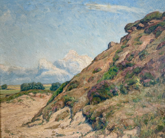 1924 Luke Bradley Antique Old Sand Dunes Impressionist Landscape in Gold Carved Frame
