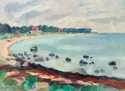 1921 Johan Ulrik Bredsdorff Bay Landscape with White Houses in Gold Frame