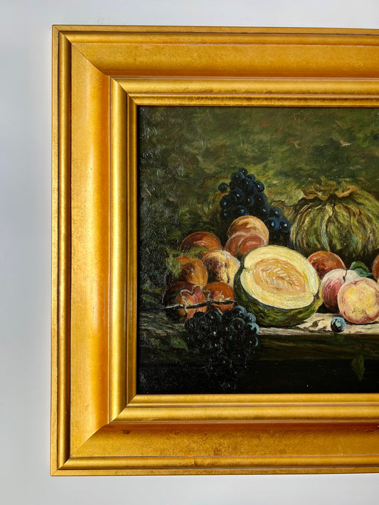 1927 Still Life of Peaches, Melon, Cabbage in Thick Gold Frame