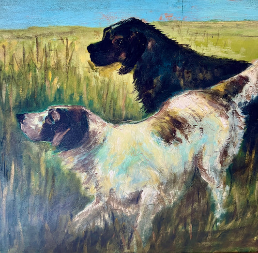 1932 English Setters Hunting Dogs Portrait Oil Painting in Ornate Gold Frame
