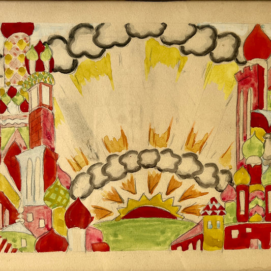 1925 Raphael Sabatini Fantastical Rainbow Kingdom Watercolor Painting in Blue Gold Frame