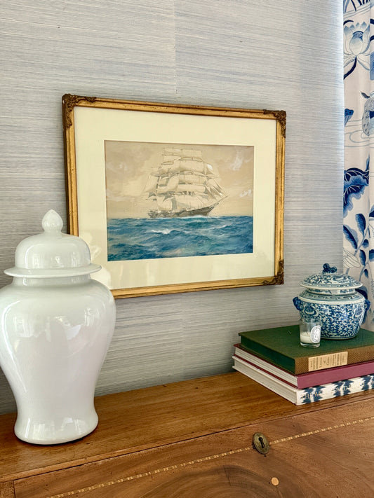 1935 William Minshall Birchall Cutty Sark Ship Portrait Painting in Gold Frame
