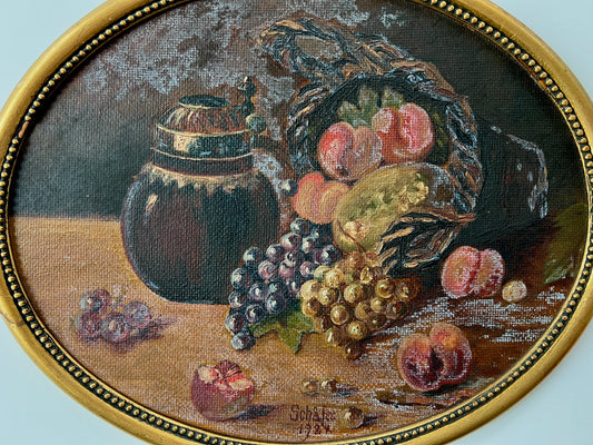 1924 Oval Still Life with Fruit Oil Painting in Oval Gold Frame