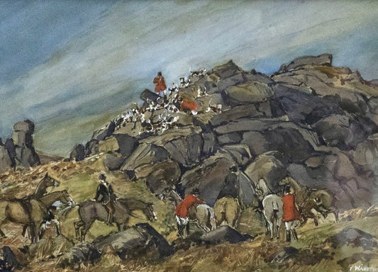 1923 The One That Got Away Fox Hunting Scene Gouache Watercolor Painting in Gilded Frame