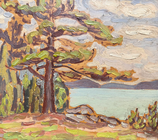 1927 D. Claude MacDonald Pigeon Lake Waterside Landscape Oil Painting in Black and Gold Frame