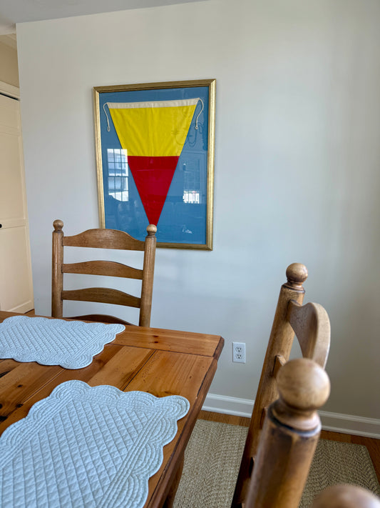 Extra Large Vintage Canvas Semaphore Nautical Signal Flag in Gold and Navy Frame