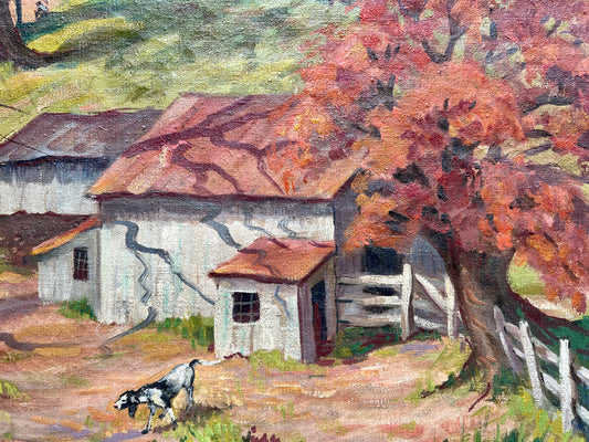 Florence Prince Ewing (American, 1898-1965) Oil Painting of Colorful Farm Landscape in Gold Frame