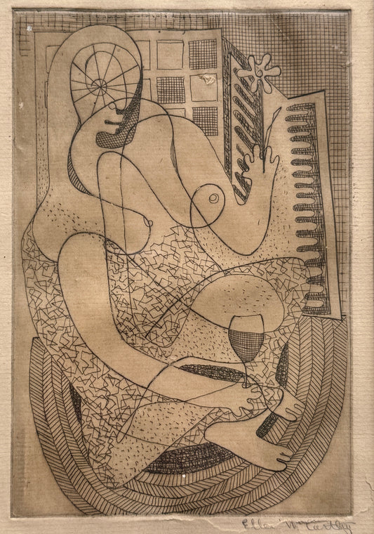 Set of Two Ellen McCarthy Engravings Female Nude Portrait and Dog in Wood and Gold Frames
