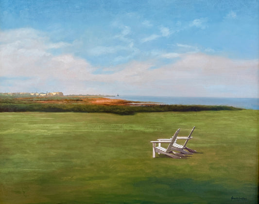 Shawn D. Jenkins For Two Lovers Seaside Adironack Chair Lookout Oil Painting in Gold Frame
