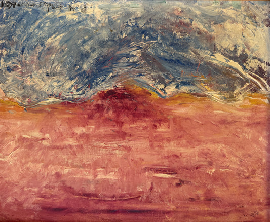1969 Vintage Abstract Blue Pink Greenland Landscape Oil Painting on Canvas in Gold Frame