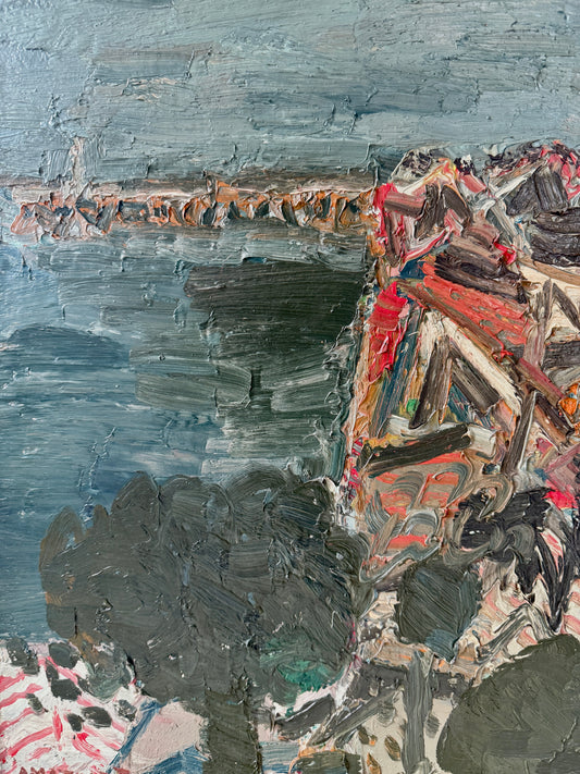 1969 Alain Mathiot Expressionist Coastal Landscape Impasto Oil Painting in Gold Frame