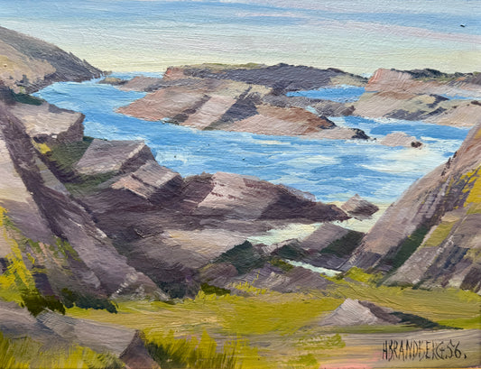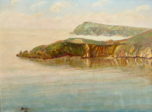 1969 Coastal Cliffs Landscape Oil Painting in Gold Frame