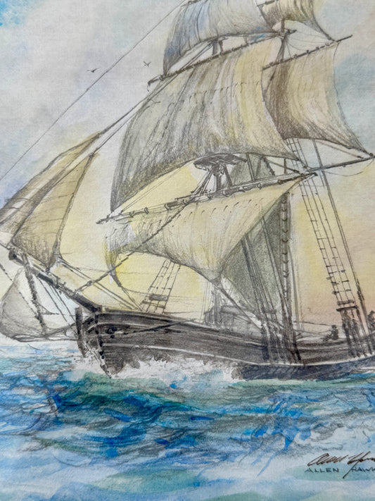1974 Allen Hawks American Ship Portrait Watercolor Painting in Gold Frame