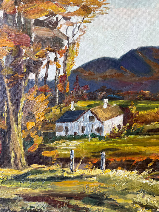 1967 American Autumn Impressionist Landscape Oil Painting in Gold Frame