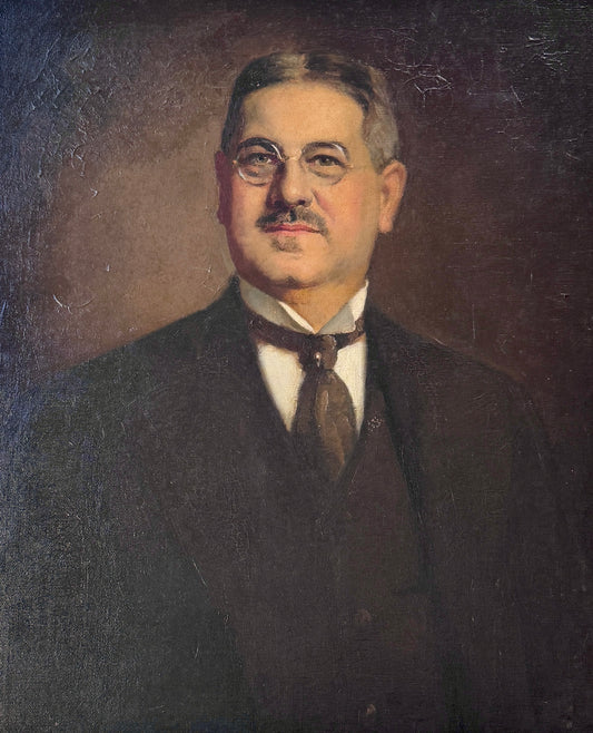 19th / Early 20th c. American Portrait of a Gentleman in Glasses Oil Painting in Gold Roped Frame