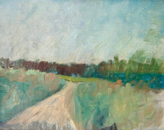 1961 Expressionist Blue Green Landscape Oil Painting in Gold Frame