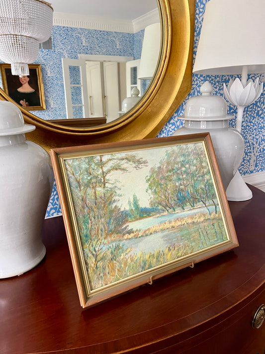 1964 Impressionist Broad Waters Landscape Oil Painting in Wood and Gold Frame